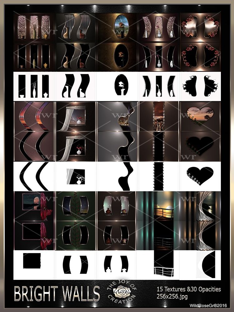 15 BRIGHT WALLS WITH OPACITIES (TOTAL 45 TEXTURES) 256X256.JPG - All textures are my own Creation.They are original. - Dont resell,give or edit them. - Dont use the files in more than one account. - Dont show my work as your own. - Inform me for your purchases to get the freebies. - You will received the files compressed in ZIP files so you must extract them. - For any question or help just contuct me.
